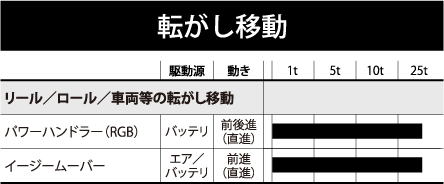 - ■工場、建設現場、クリーンルーム等での重量物の