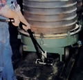 プッシャタイプは、台車の一部にプッシャタイプのアタッチメントを押し当て、台車を前方に移動させます。車輪直径が600m/m未満の台車やレール上を動く台車のように、ローリングタイプで直接車輪へ推進力をかけられない場合に使用します。