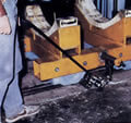 エアバッグを装備させたことにより、移動物との連結がスムーズに行えるとともに、駆動ローラーへの負荷を自動にかけることを可能にしました。また、前後進タイプで耐久性の高いフェノール材質の自在キャスタを装備しているため、大型機械、重量台車、レールカートなどを自由自在に移動することができます。