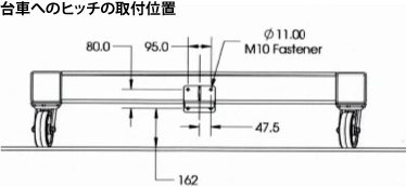 台車に対してヒッチ(弊社支給)を所定の高さに取付け、PGB3を台車のヒッチの直下に移動させ、ヒッチとPGB3を結合します。台車との結合方法には、次の3種類のタイプがあります。