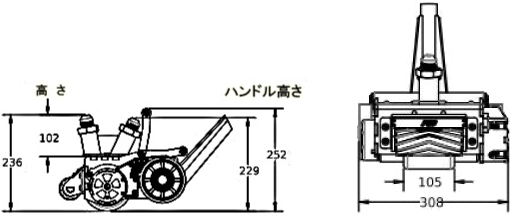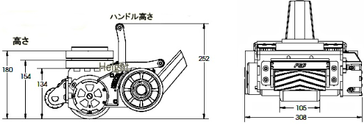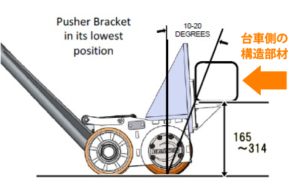 • ●台車を押すブラケットの高さが変更可(165~314mm)